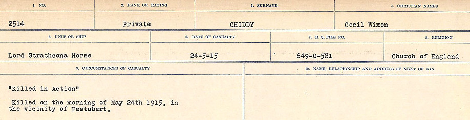 Son of Mr. E. C. and Mrs. C. A. Chiddy, of Easton, Winchester, Hants, England.