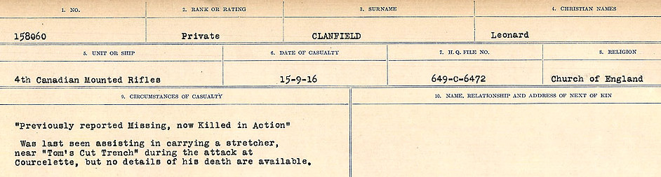 Unit/Regiment: 4th Canadian Mounted Rifles (2nd Central Ontario Regt.)