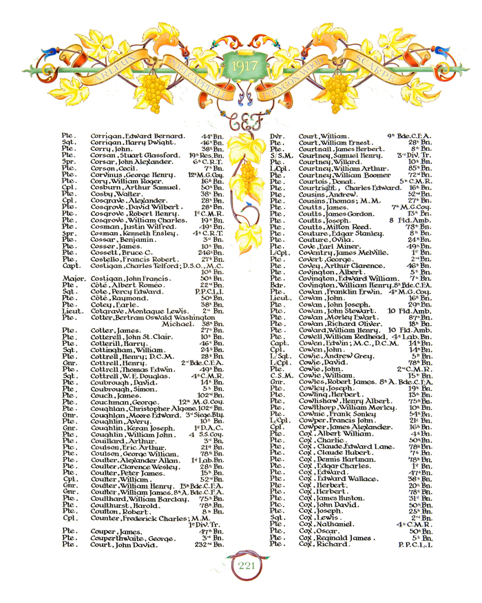 Inscribed on the ramparts of the Vimy Memorial are the names of over 11,000 Canadian soldiers who were posted as 'missing, presumed dead' in France.