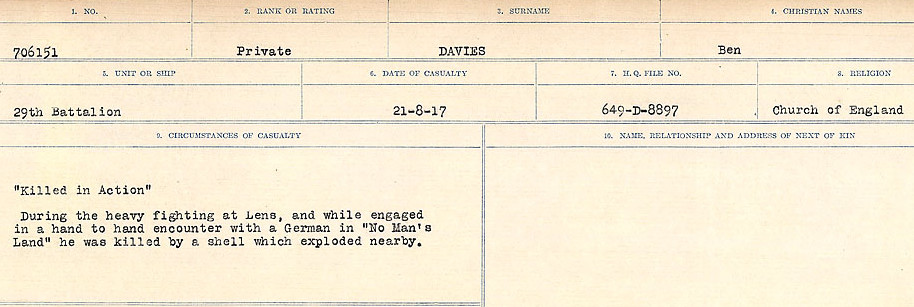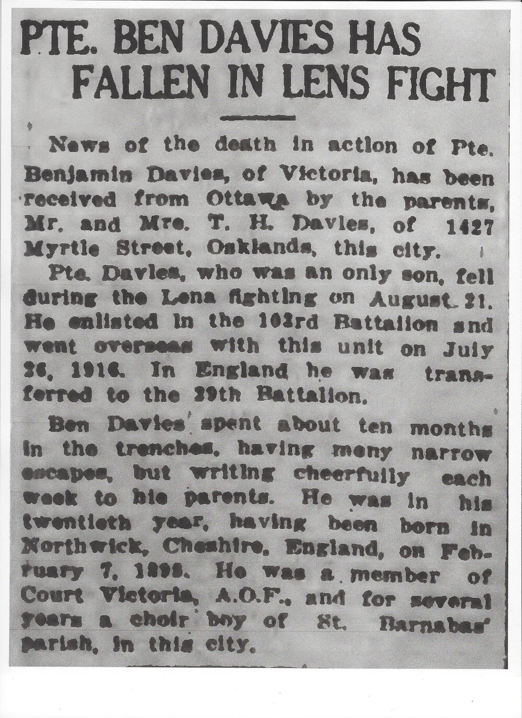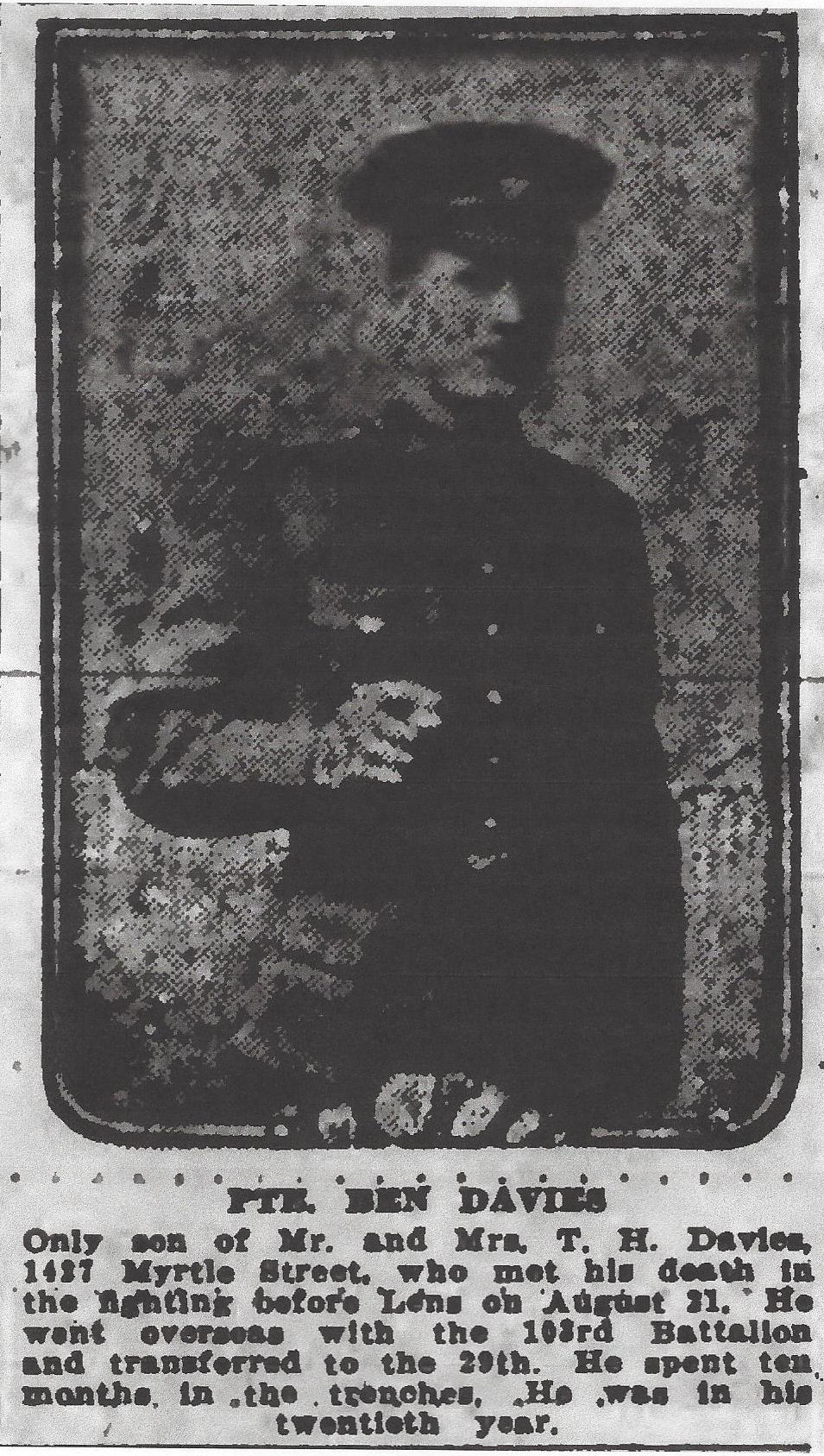 Son of T. H. and Mary E. Davies, of Trail, British Columbia.