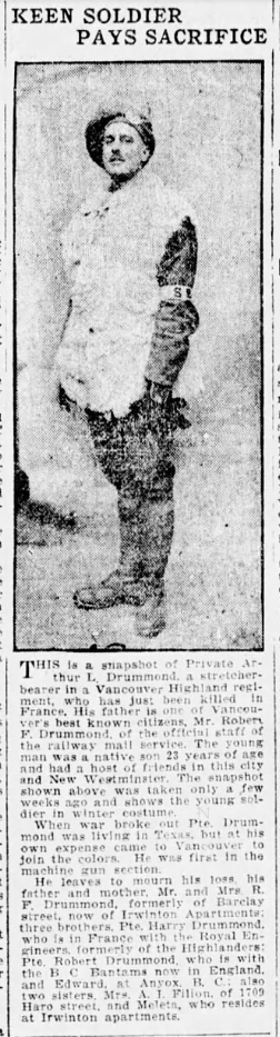 Son of Robert Fraser Drummond and Mary Ann Drummond, of 1709, Haro St., Vancouver, British Columbia.