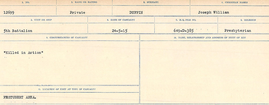 Digital gallery of Private Joseph William Duffin