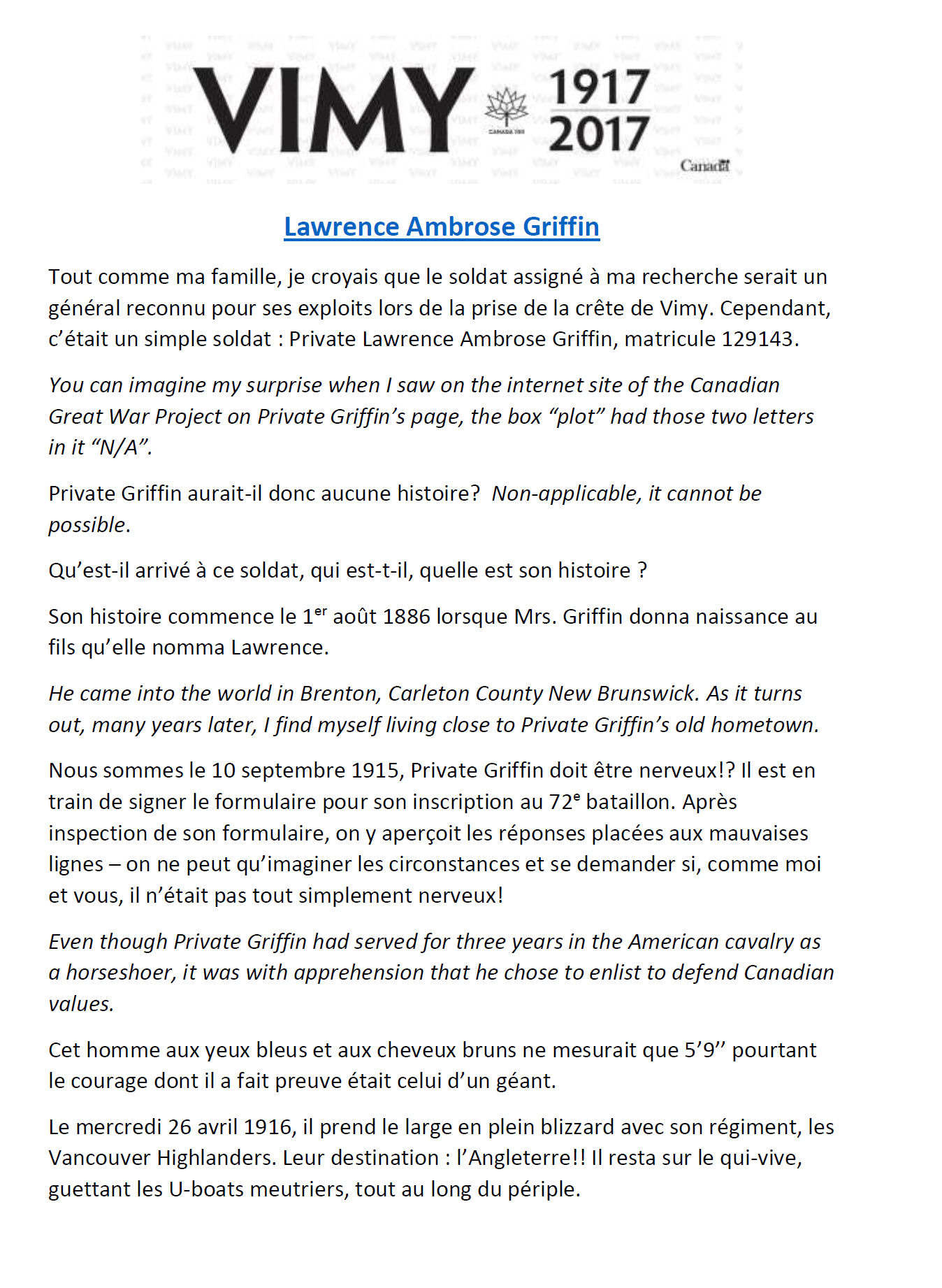 Digital gallery of Private Lawrence Ambrose Griffin