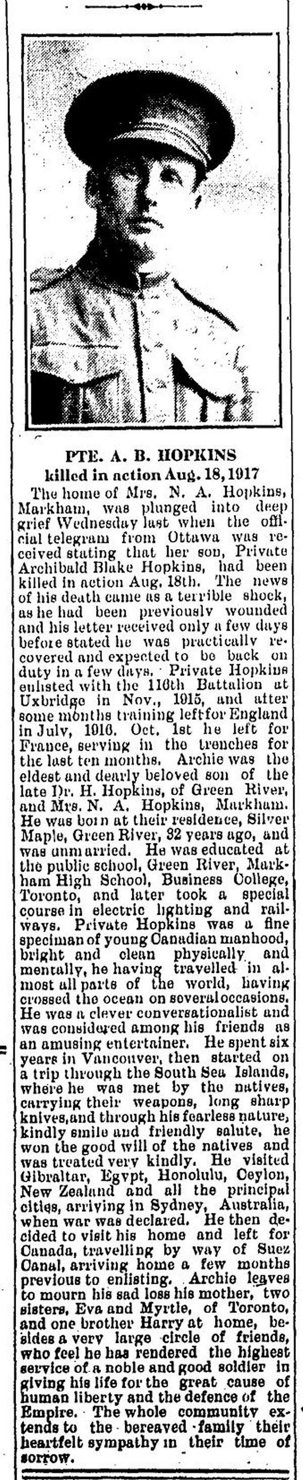 Digital gallery of Private Archibald Blake Hopkins