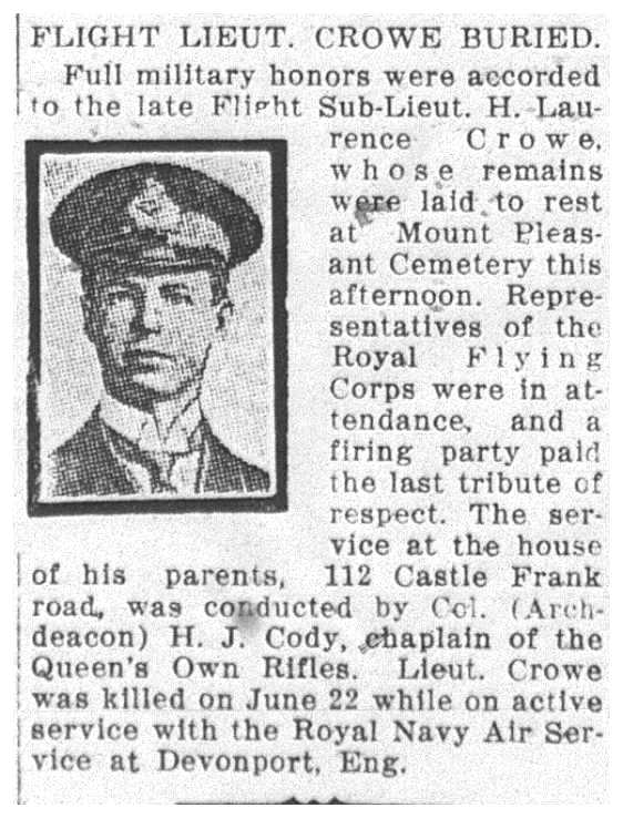 Son of Harry J. and Helen R. Crowe, of 37 St. Edmund's Drive, Toronto, Ontario.