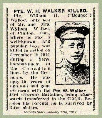 Son of William and Isabella Walker, of Clinton, Ontario.