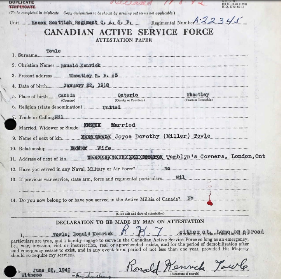 Son of John and Nellie Towle of Wheatley, Ontario. Husband of Joyce Towle of London, Ontario.