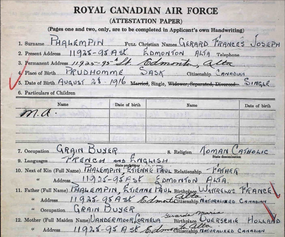 Digital gallery of Flight Sergeant Gerard Francis Joseph Phalempin