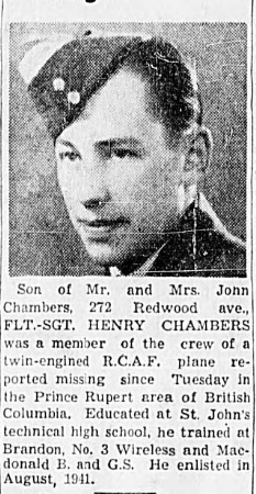 Son of John and Paraska Chambers, of Winnipeg, Manitoba.