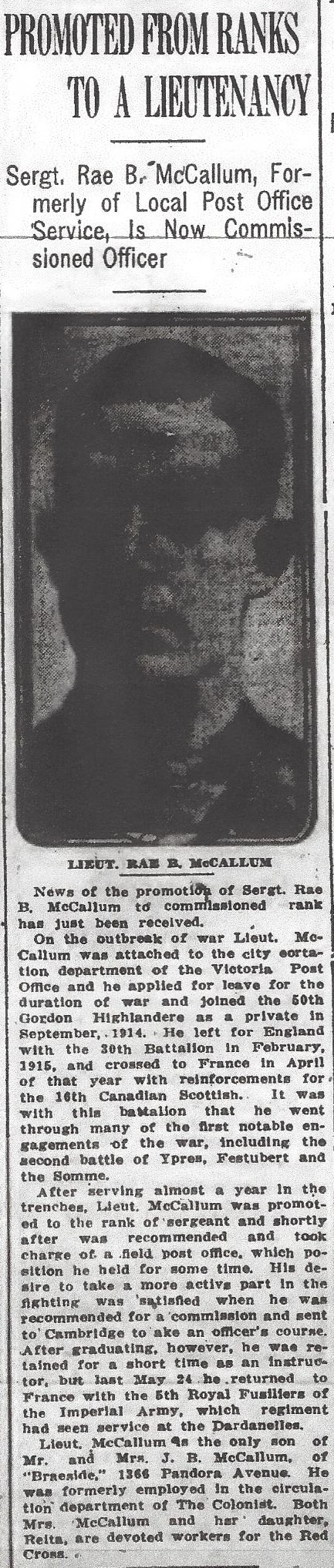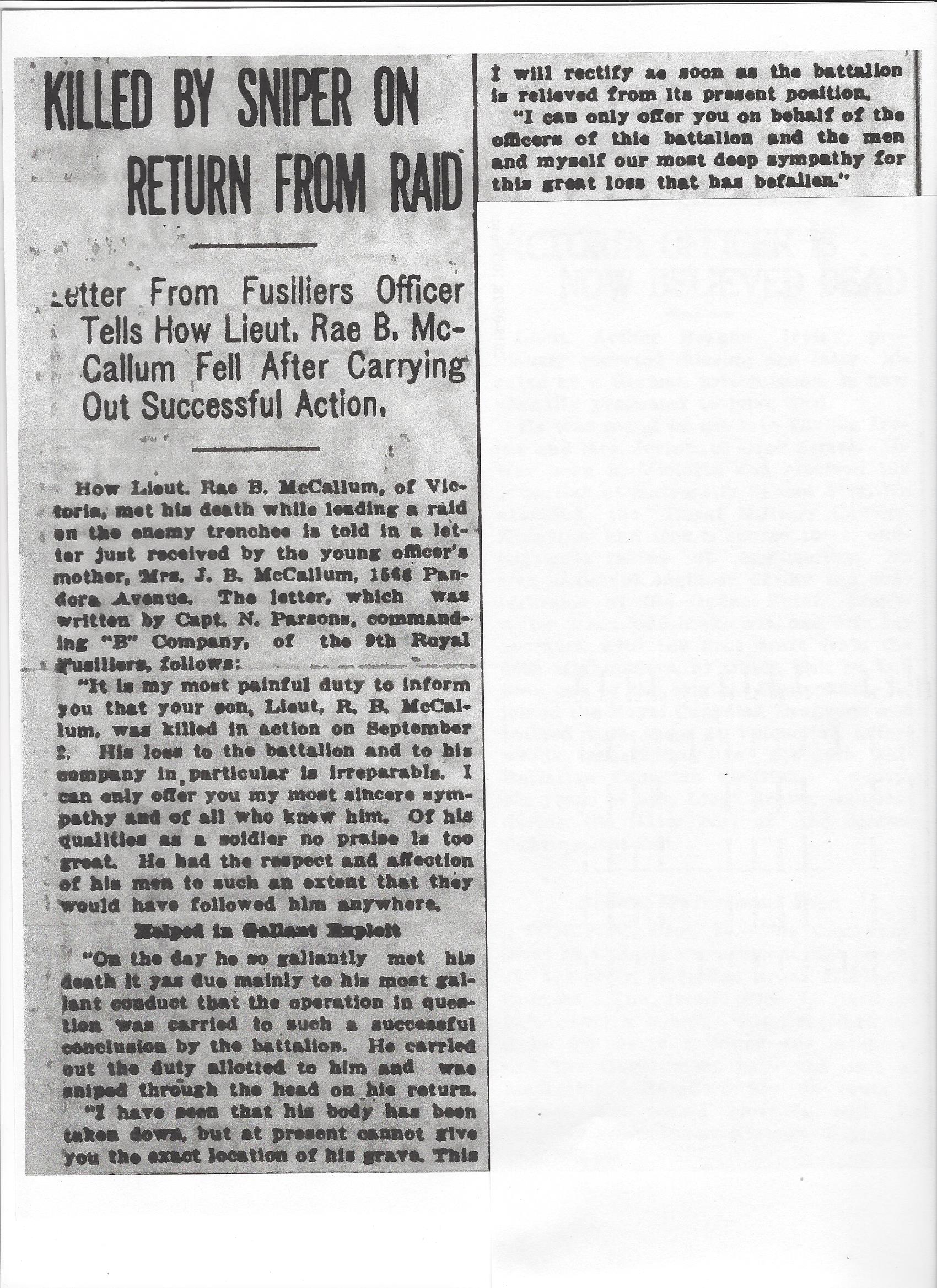 Digital gallery of Second Lieutenant Rae Bruce McCallum