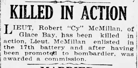 Son of Mr. and Mrs. Charles McMillan, of Sydney Mines, Cape Breton, Nova Scotia.