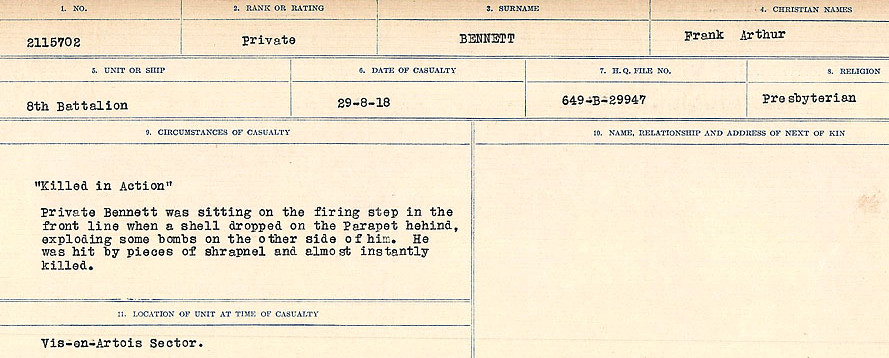 Digital gallery of Private Frank Arthur Bennett