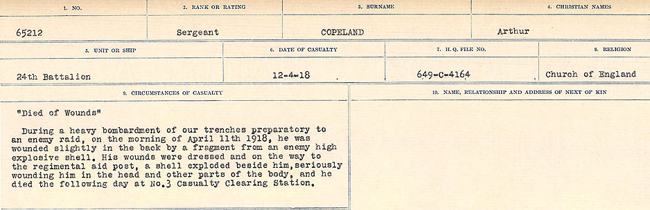 Son of John Copeland and Flora Miriam Copeland (nee Lawford), of "Oakfield," Oak Avenue, Hampton, Middx.