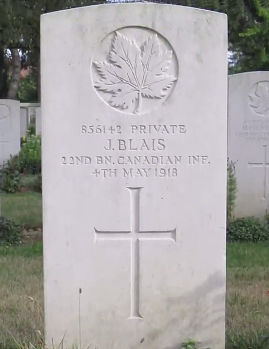 From the 150th Battalion, Canadian Expeditionary Force, he was transferred to the 22nd Battalion on 27 February 1918 and fought at Neuville-Vitasse, Pas-de-Calais, France, where he was killed in action on 14 March.