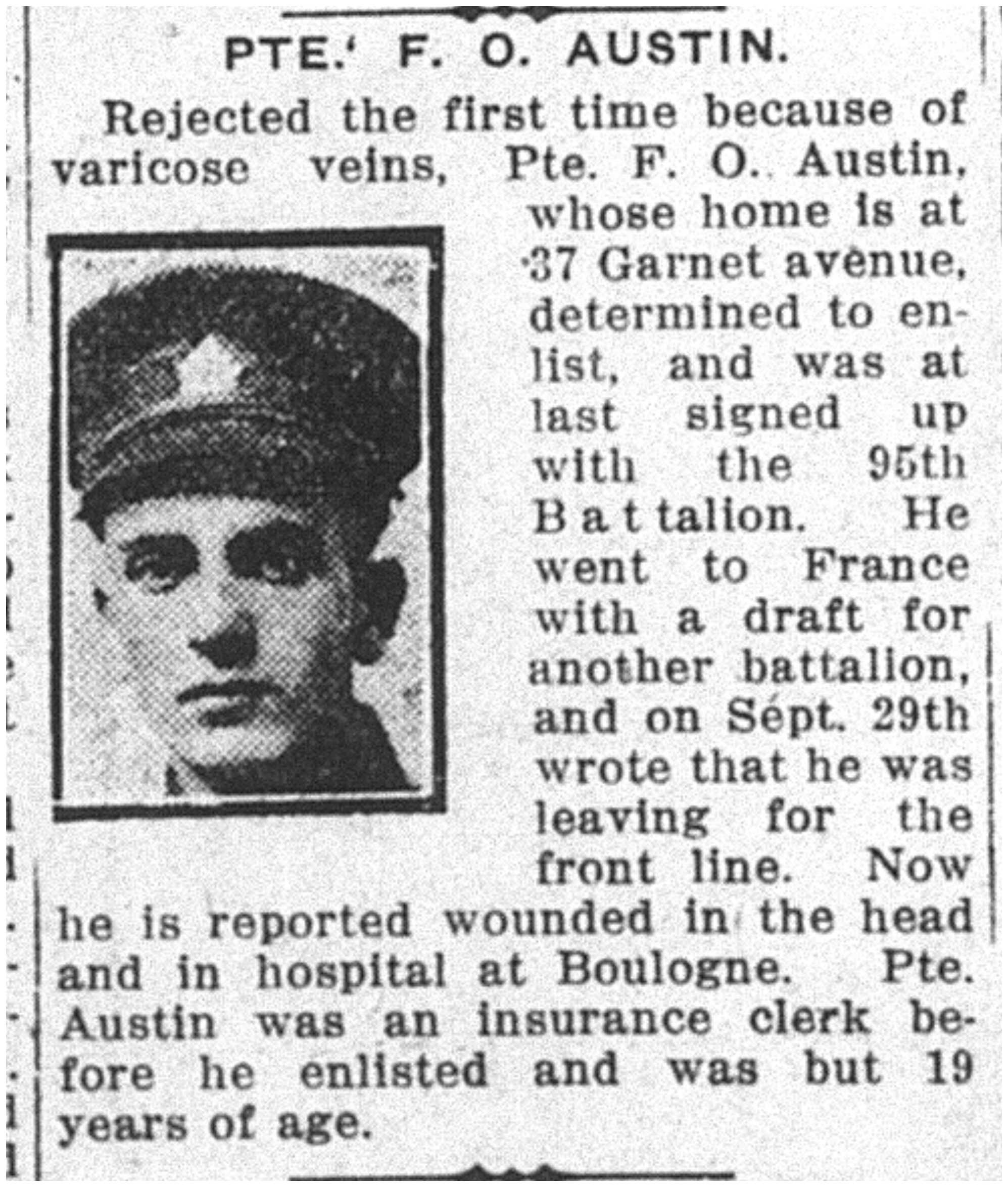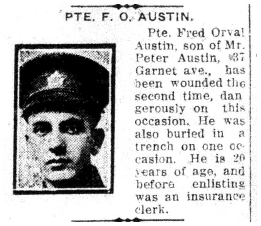 Son of Peter and Hester E. Austin, of 37, Garnet Avenue, Toronto.