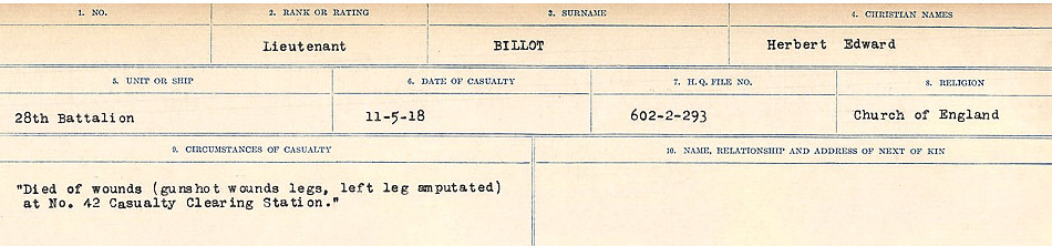 Son of Mr. P. A. and Mrs. S. A. Billot, of "Good Hope," Dane Park Rd., Ramsgate, Kent, England.
