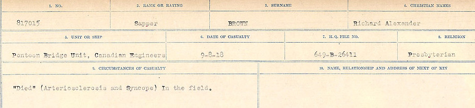 Father of Private Edward Brown, who died on October 16, 1918 while serving with the Canadian Infantry (New Brunswick Regiment).