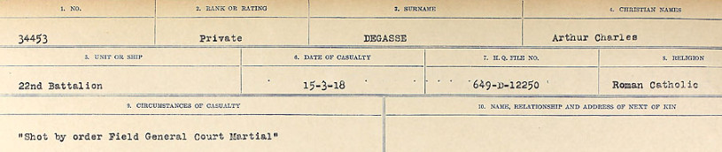 He enlisted with the name Arthur-Charles DAGESSÉ but the Army listed him as DEGASSE.