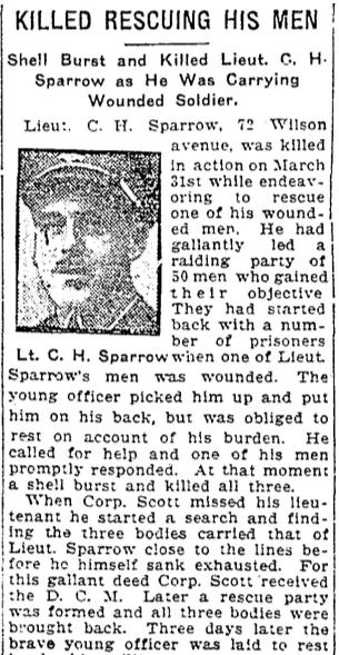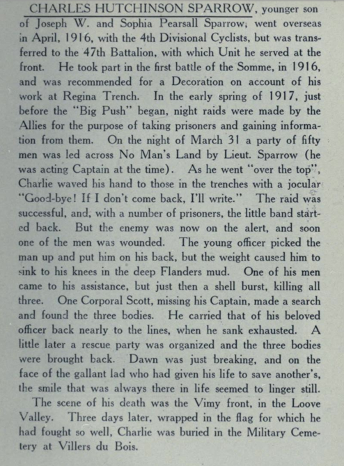 Son of Joseph William and Sophia Jane Sparrow, of 99, Jameson Avenue, Toronto, Ontario.
