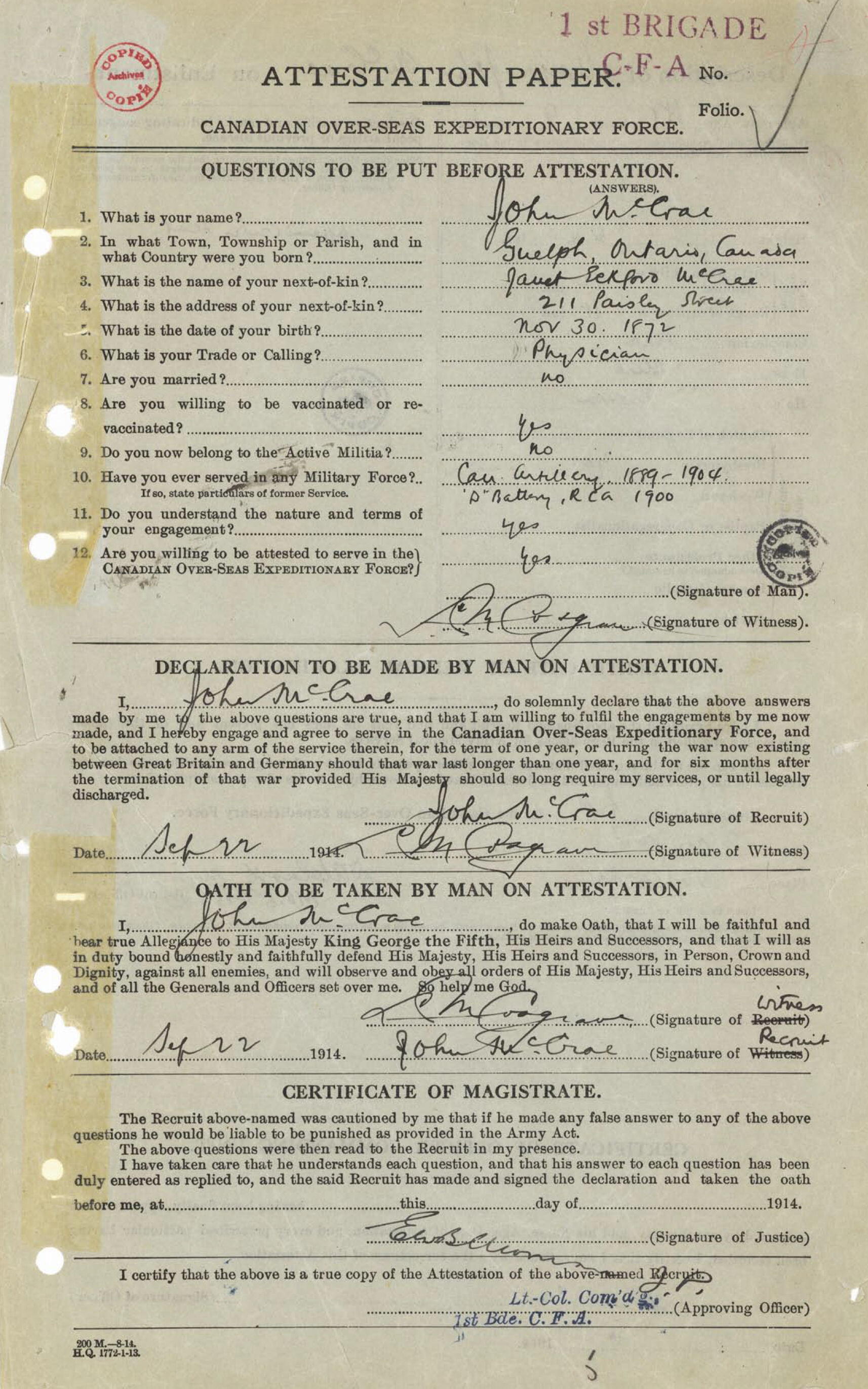 Digital gallery of Lieutenant Colonel John McCrae