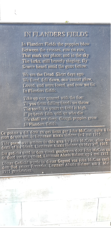 The day before he wrote his famous poem, one of McCrae's closest friends was killed in the fighting and buried in a makeshift grave with a simple wooden cross. Wild poppies were already beginning to bloom between the crosses marking the many graves. Unable to help his friend or any of the others who had died, John McCrae gave them a voice through his poem. It was the second last poem he was to write.