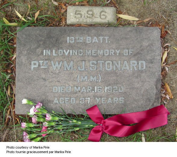 Son of William and Elizabeth Stonard, of London, England; husband of W. J. Stonard, of 57, Louisa St., Toronto, Ont. Veterans.