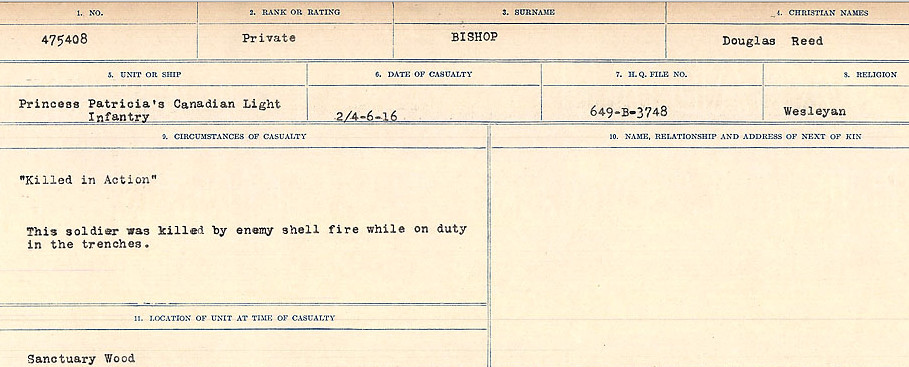 Source: Library and Archives Canada. CIRCUMSTANCES OF DEATH REGISTERS FIRST WORLD WAR Surnames: Birch to Blakstad. Mircoform Sequence 10; Volume Number 31829_B034746; Reference RG150, 1992-93/314, 154 Page 181 of 734 -