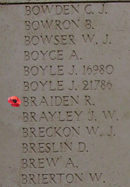 HERE ARE RECORDED NAMES OF OFFICERS AND MEN WHO FELL IN YPRES SALIENT BUT TO WHOM THE FORTUNE OF WAR DENIED THE KNOWN AND HONOURED BURIAL GIVEN TO THEIR COMRADES IN DEATH.