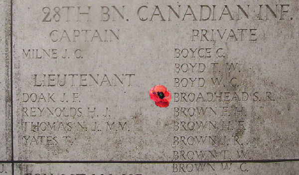 HERE ARE RECORDED NAMES OF OFFICERS AND MEN WHO FELL IN YPRES SALIENT BUT TO WHOM THE FORTUNE OF WAR DENIED THE KNOWN AND HONOURED BURIAL GIVEN TO THEIR COMRADES IN DEATH.