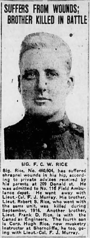 Son of Arthur Morton Rice and Hughena Adele Rice, of Winnipeg, Manitoba. Born at Toronto.