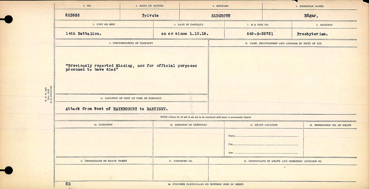 Digital gallery of Private Edgar Sadgrove