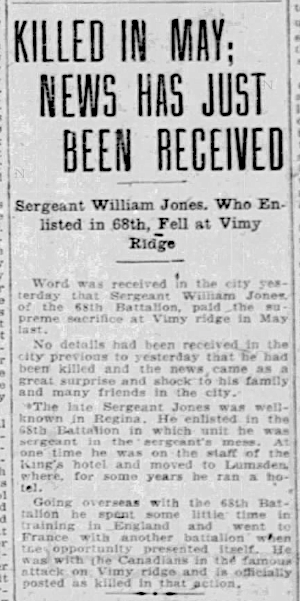 Son of James Jones; husband of Ethel M. Jones, of Regina, Saskatchewan.