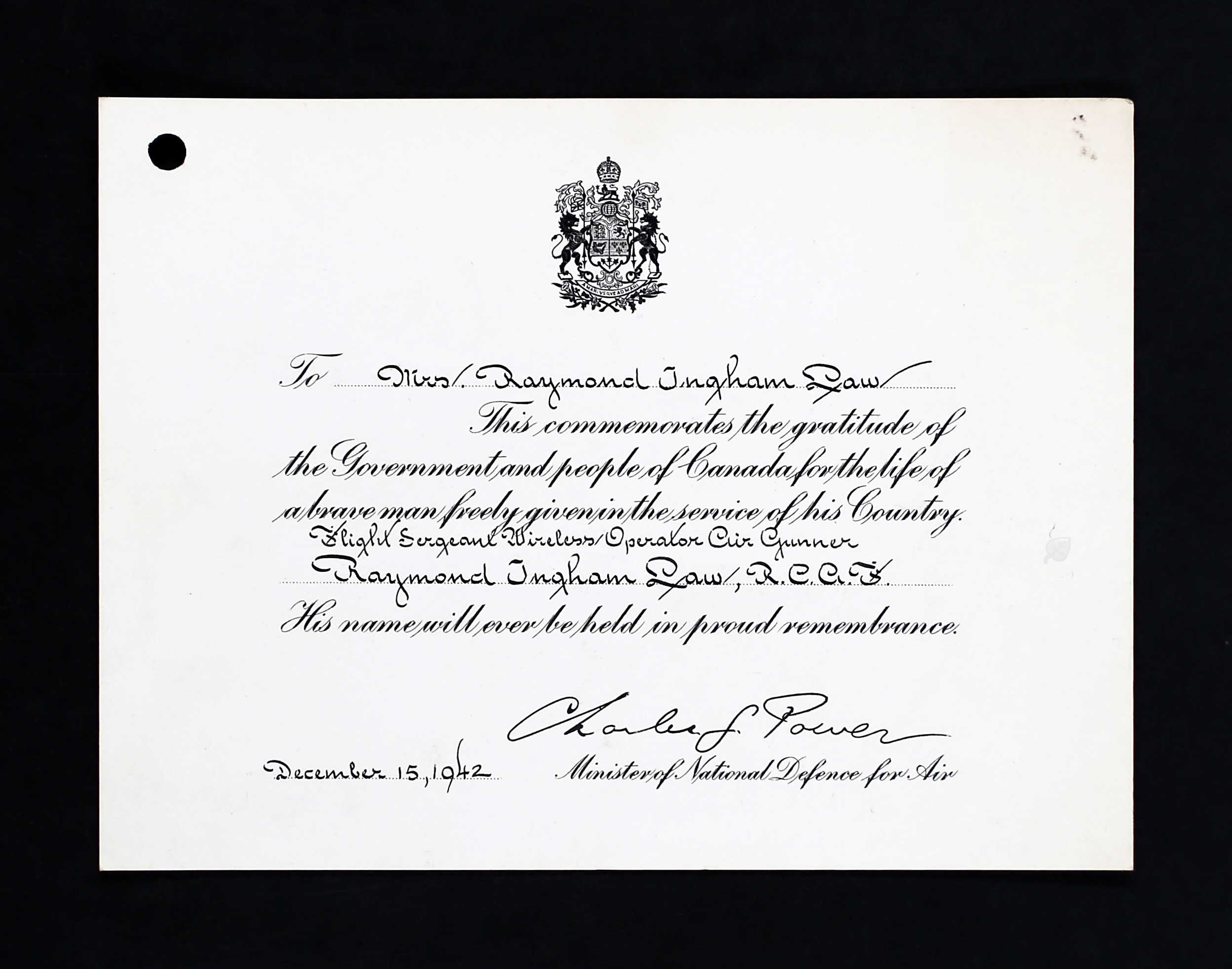 Pilot Officer Raymond Ingham Law