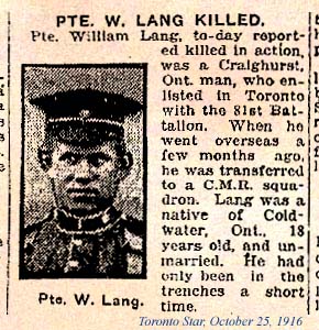 Son of James A. and Martha Lang, of Craighurst, Ontario.