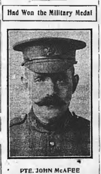 Son of Mrs. Isabella McAfee, of Paisley, Ontario, and Hugh McAfee.