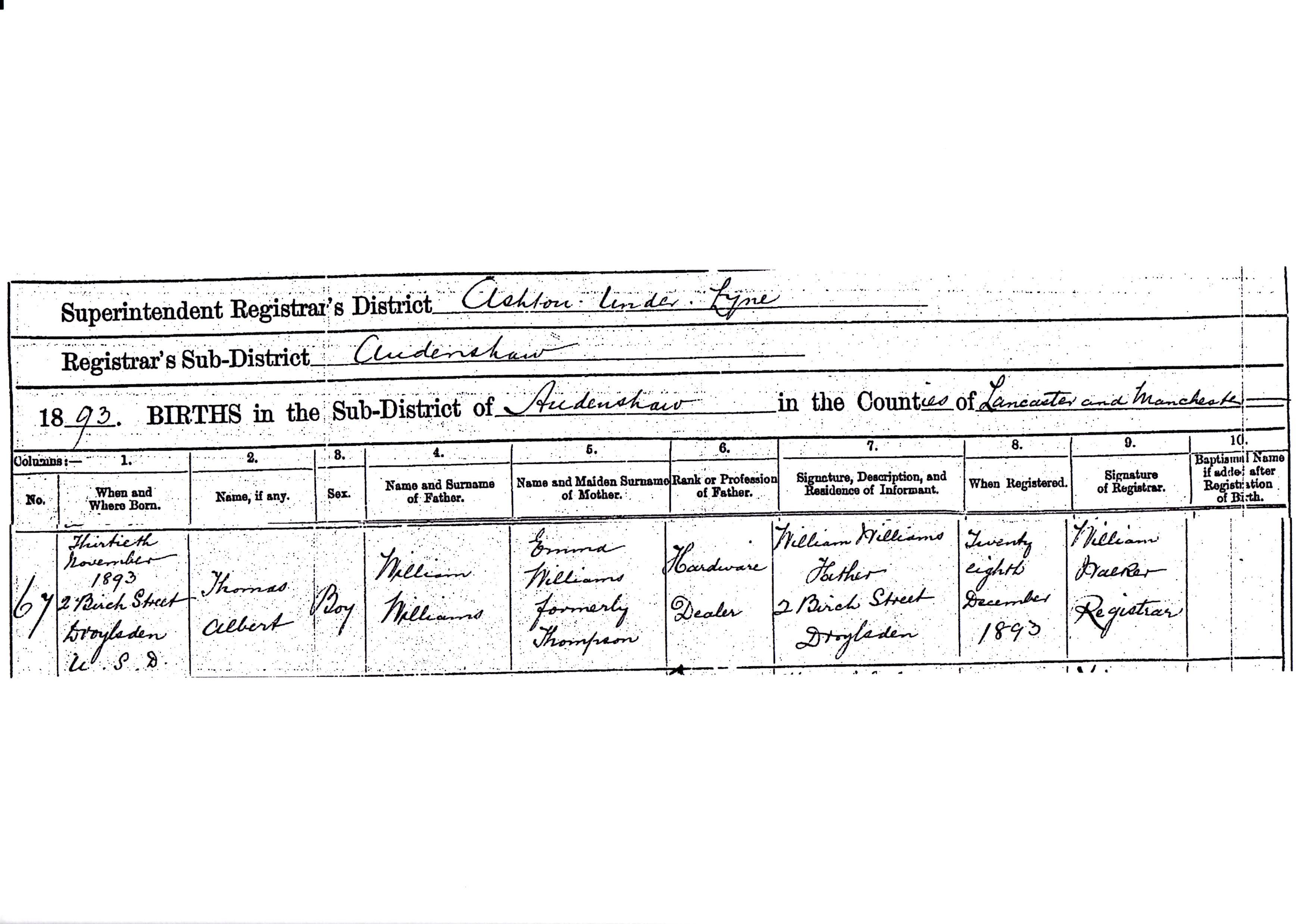 Son of Thomas and Emma Williams, of Manchester, England.