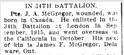 Son of James Francis McGregor and Margaret McGregor, of Delaware, Ontario.