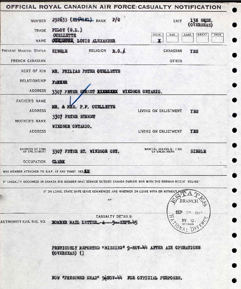 Digital gallery of Pilot Officer Louis Alexander Ouellette