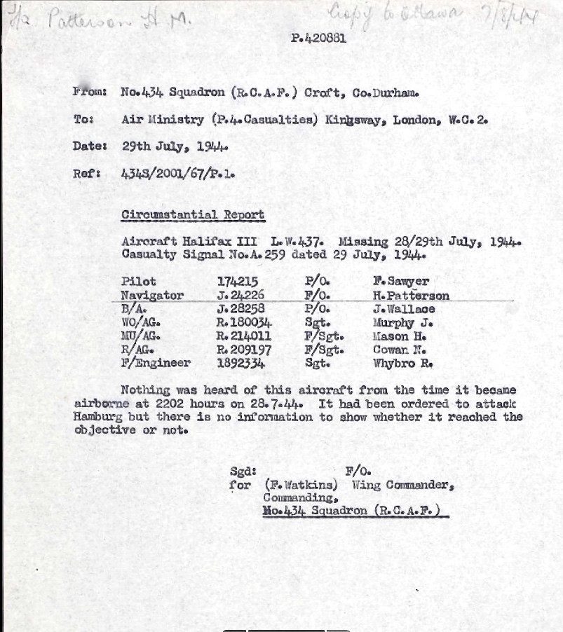 Page 413 of the Second World War Book of Remembrance.