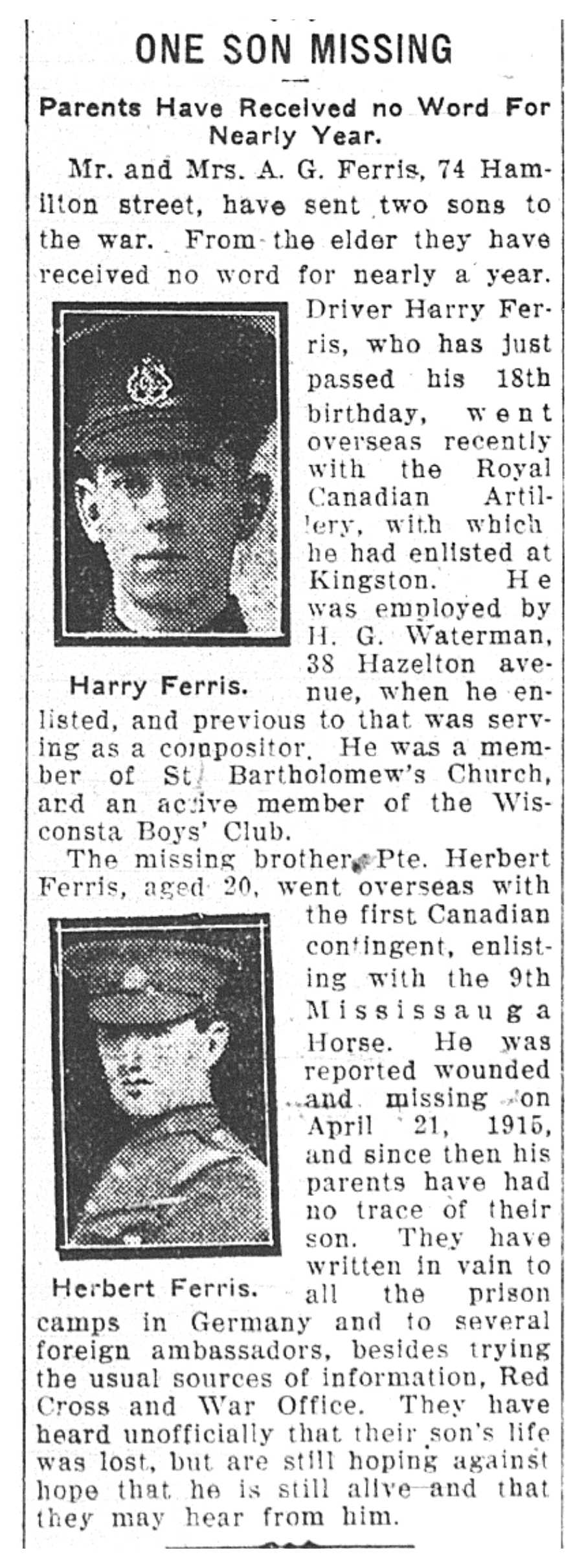 Digital gallery of Private Herbert Ferris