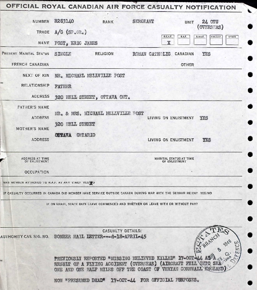 Page 419 of the Second World War Book of Remembrance.
