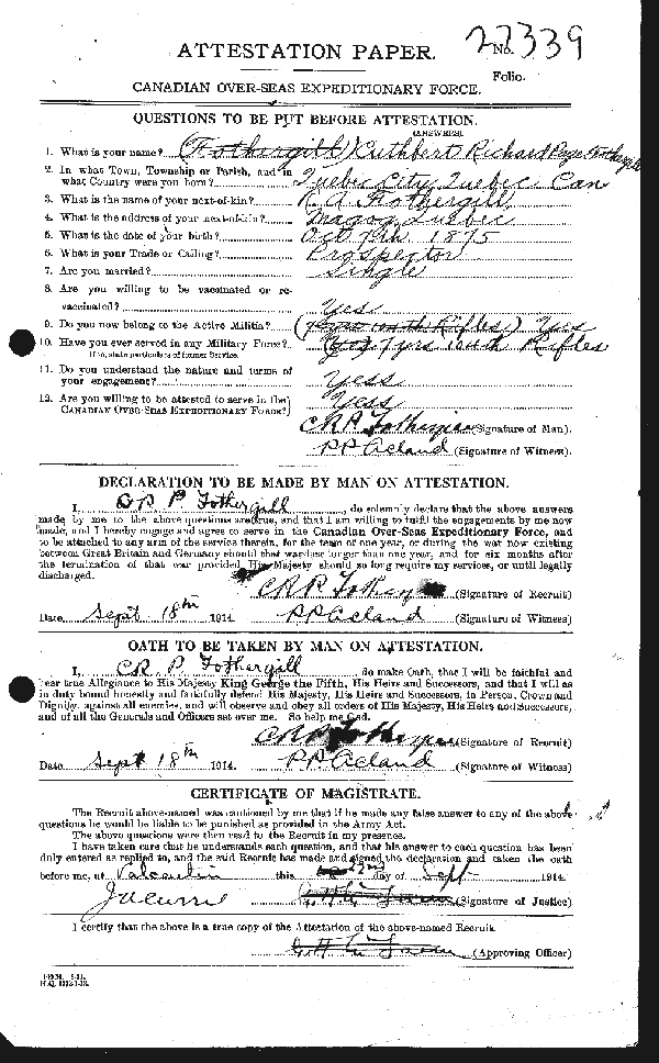 Digital gallery of Private Cuthbert Richard Page Fothergill