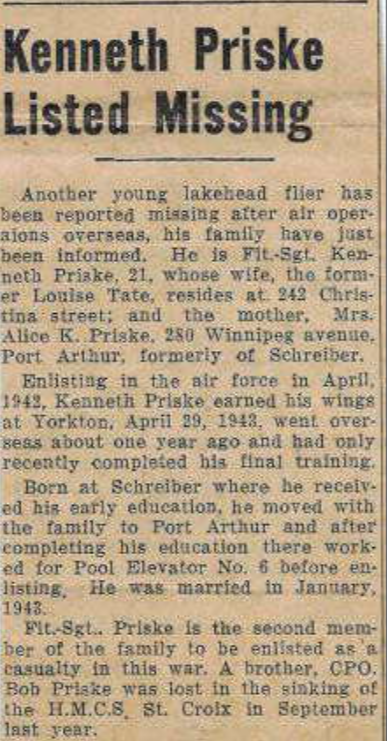 Brother of Petty Officer Sydney Robert Priske, who died during service with the Royal Canadian Navy.