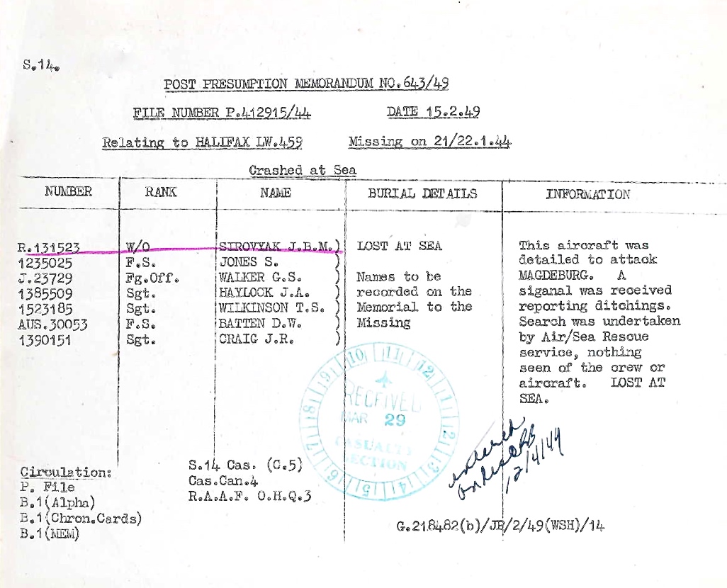 Page 444 of the Second World War Book of Remembrance.