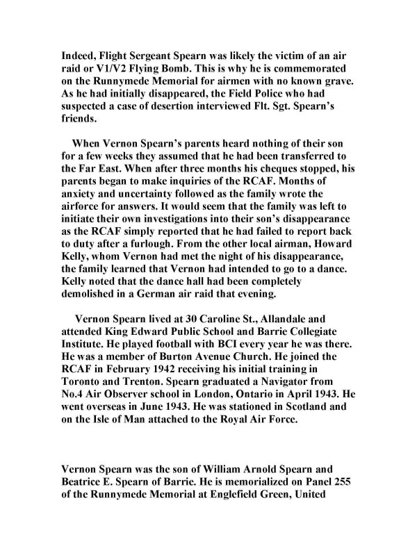Son of William Arnold Spearn and Beatrice E. Spearn, of Barrie, Ontario, Canada.