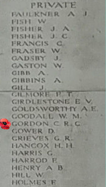 HERE ARE RECORDED NAMES OF OFFICERS AND MEN WHO FELL IN YPRES SALIENT BUT TO WHOM THE FORTUNE OF WAR DENIED THE KNOWN AND HONOURED BURIAL GIVEN TO THEIR COMRADES IN DEATH.