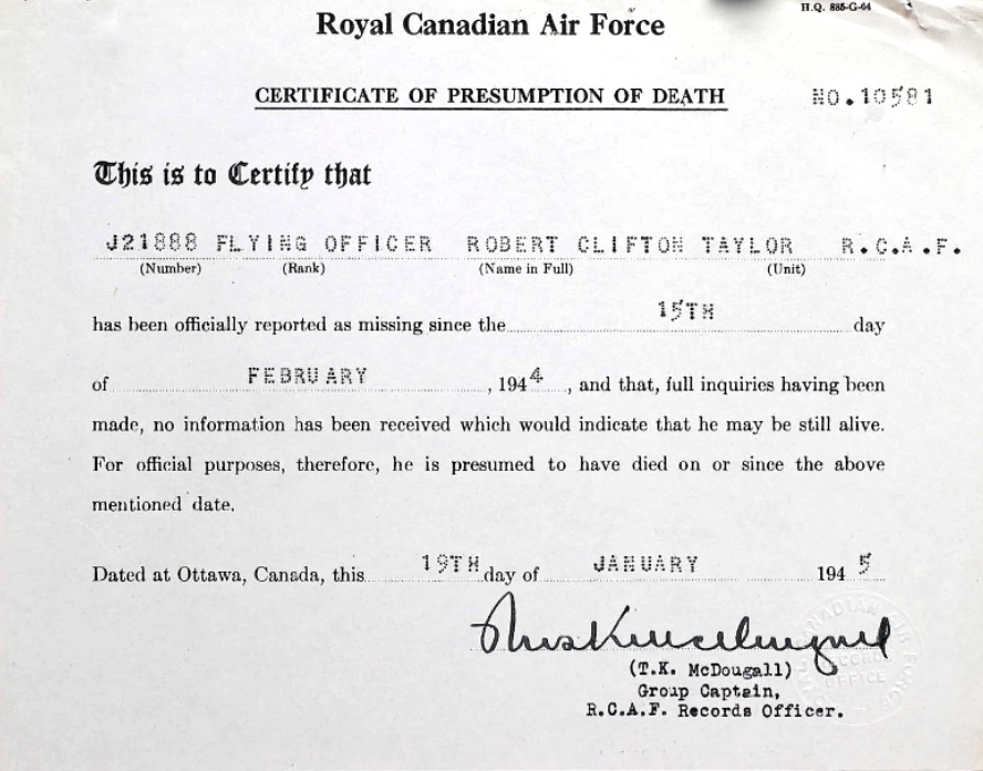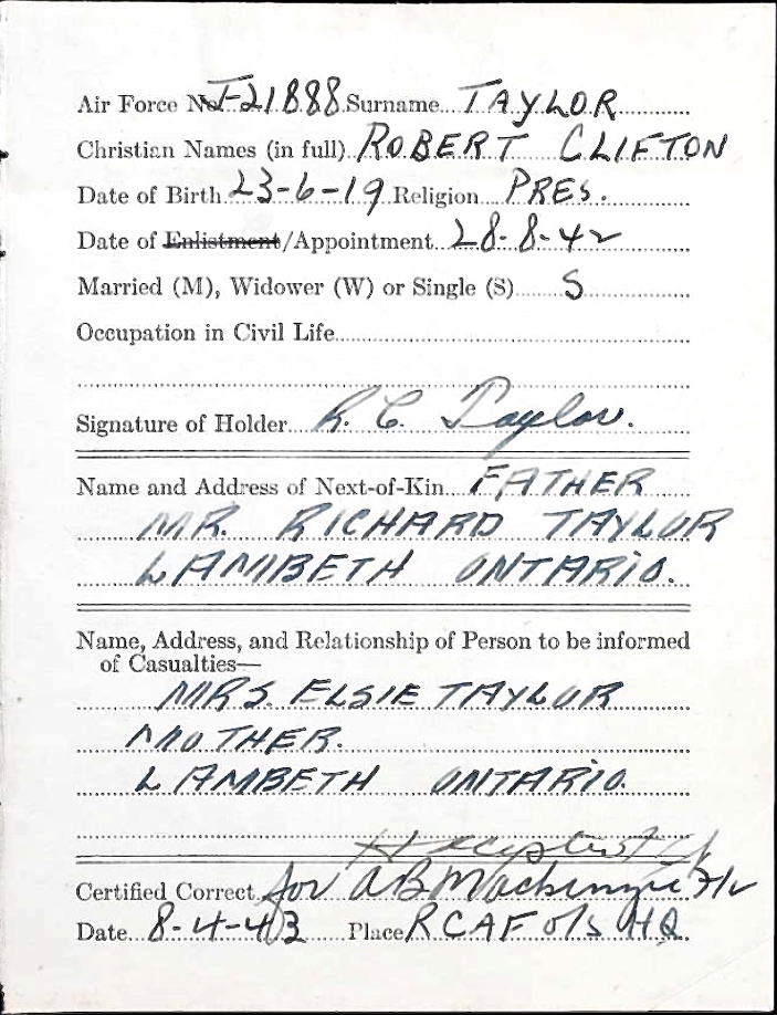 Digital gallery of Flying Officer Robert Clifton Taylor