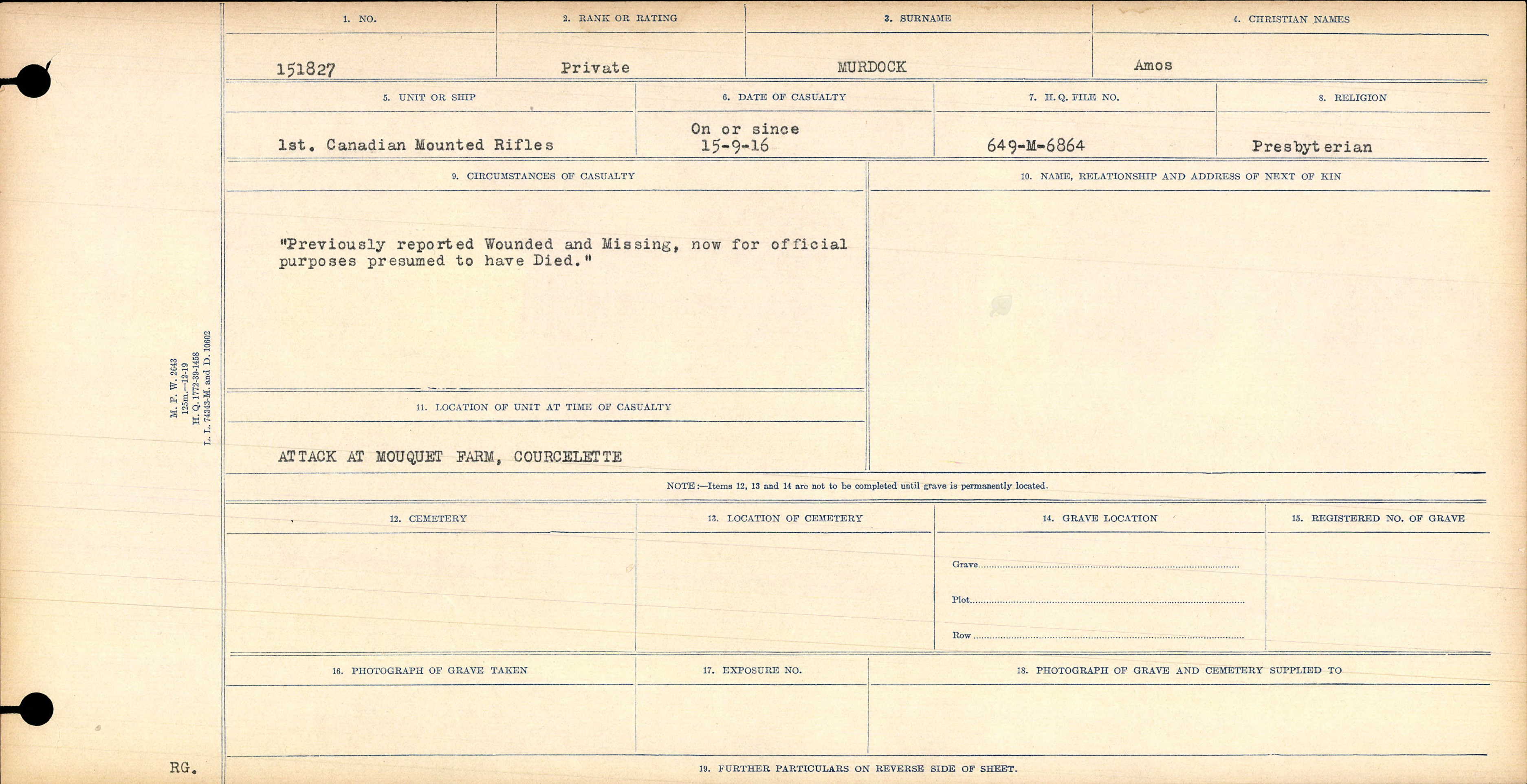 Do you have photographs, information or a correction relating to this individual’s virtual memorial? Learn more about the CVWM and the information we collect.