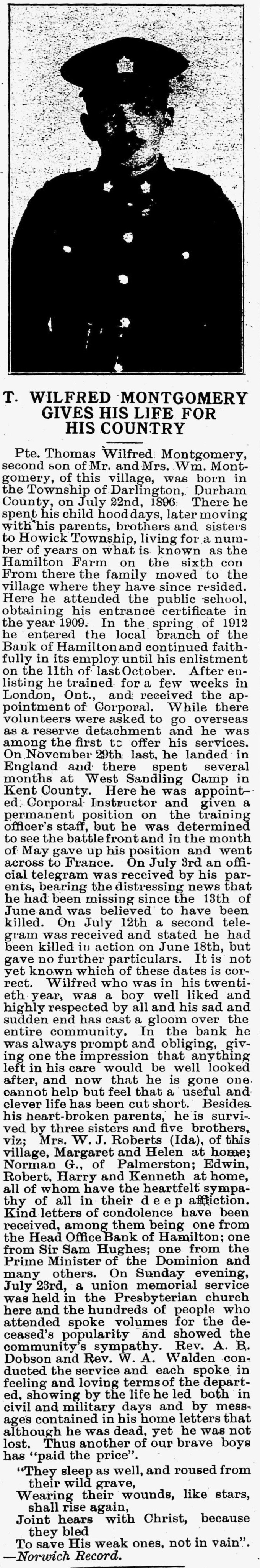 Digital gallery of Private Thomas Wilfrid Montgomery