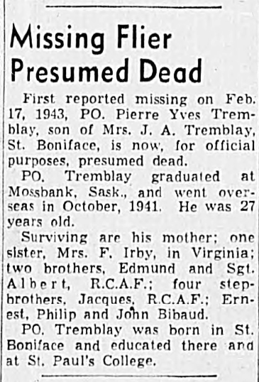 Digital gallery of Pilot Officer Pierre Yves Camille Tremblay